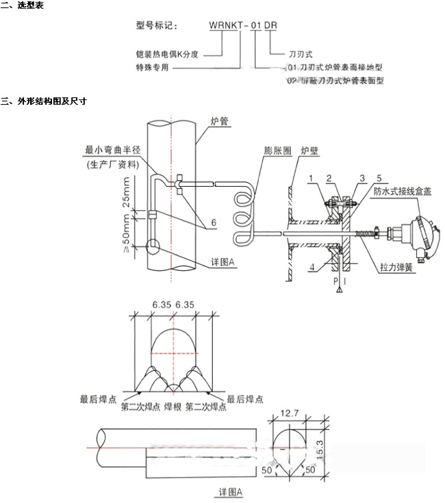 用途及特点: 适用于加热炉壁和炉管表面高温场所的温度测量。 |