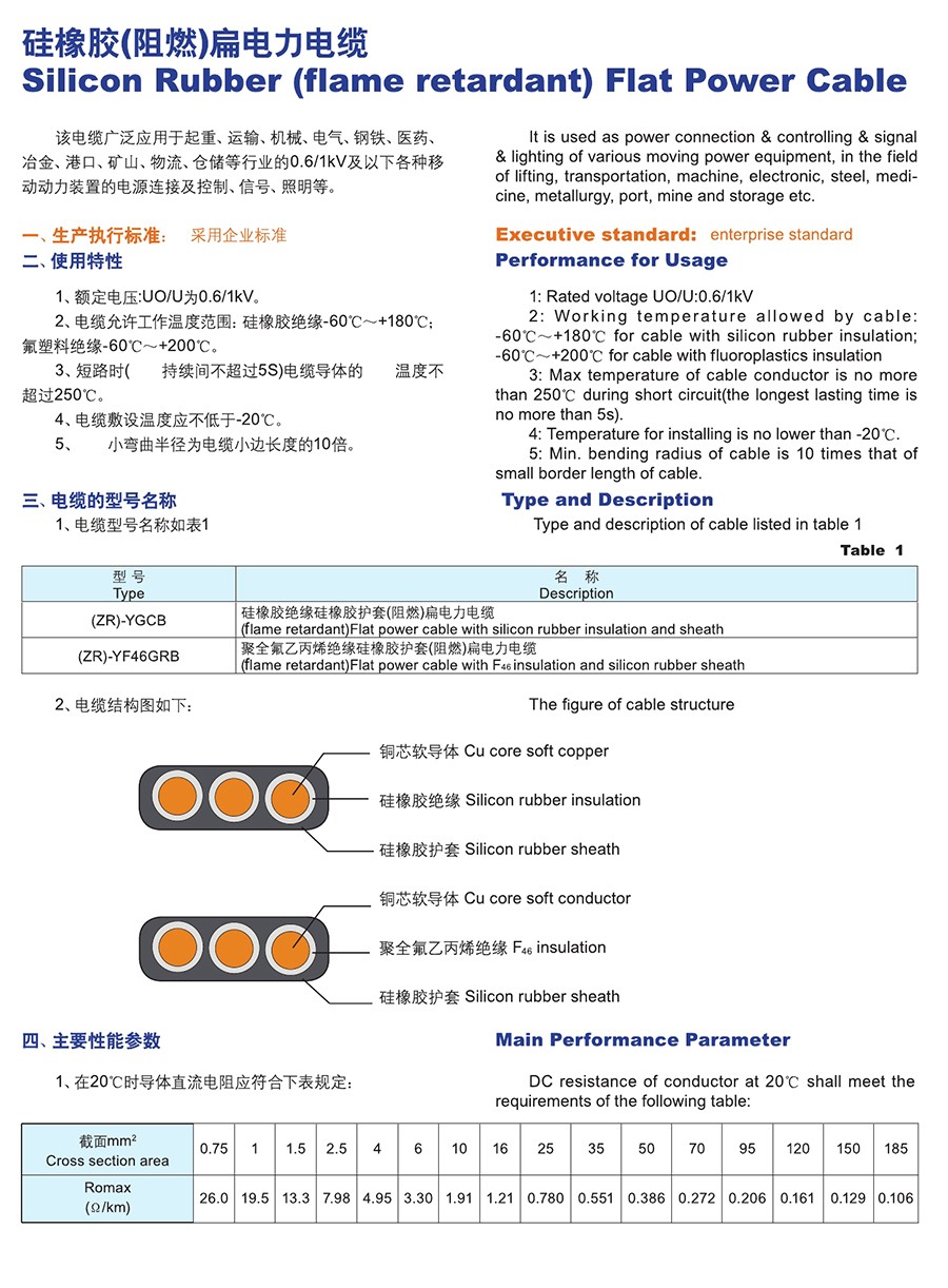 硅橡胶(阻燃)扁电力电缆